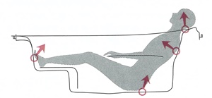 椅子に座っているような楽な姿勢でお湯につかることができます。