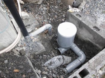 雑排水用のビニマスをかさ上げし、排水管を延長しました。大垣設備の得意分野です。