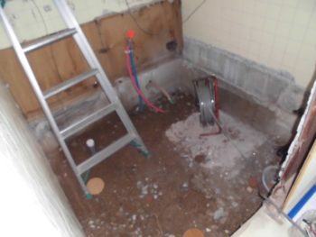 既存の浴室を解体・撤去し、給水・給湯・排水の配管工事をしました。