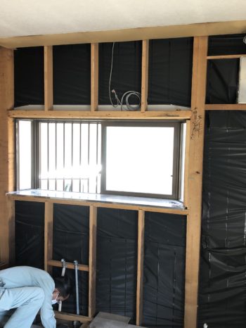 今までの流し台を撤去し、壁や床を解体しました。配管工事中です。