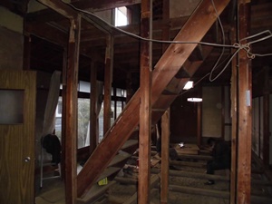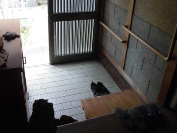 玄関内部の壁や天井も老朽化していました。