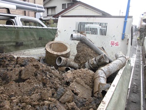 古いコンクリート製排水マスや排水管を撤去しました。