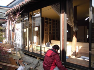 掃き出し窓のサッシを取り替えています。