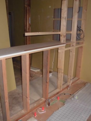 対面式システムキッチン背後のカウンターを作っています。