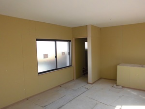 2階の部屋の壁の下地を張りました。窓サッシも新しくしました。