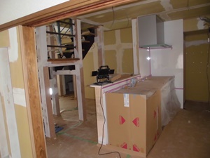 対面式システムキッチンを設置していきます。