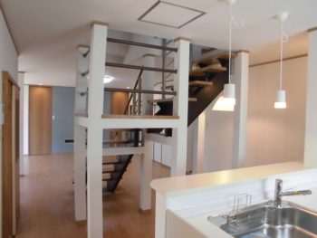 折れ曲がりのあるスケルトン(オープン型)階段が完成しました。
