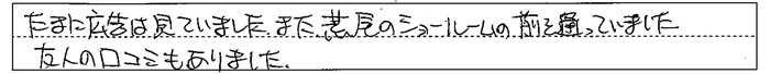 「何がきっかけで、大垣設備のリフォーム工事を知りましたか?」とお尋ねしたところ、つぎのようにお答えになりました。 たまに広告は見ていました。また、荒尾のショールームの前を通っていました。 友人の口コミもありました。 |