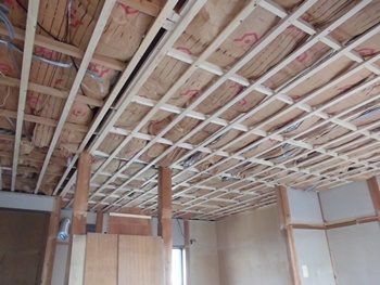 天井を解体撤去したので屋根の骨組みが丸見えです。