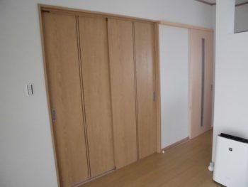 リビングと寝室を仕切る引き戸(手前)とトイレや洗面・脱衣室の入口の引き戸(奥)です。