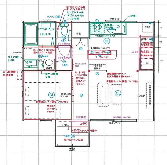 | 使用商材 | TOTOシステムキッチン「クラッソ」1950、TOTOシステムバス「サザナ」1216、TOTO洗面化粧台「サクア」750、TOTOピュアレスト・アプリコット |