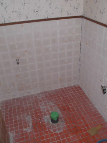 既存の便器を撤去しました。壁のタイルも剥がしました。